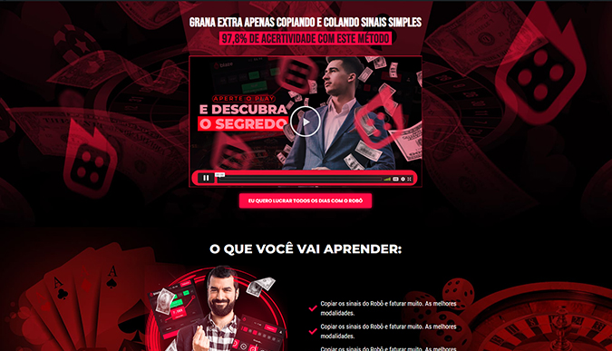 Pagina tipo landing page para capturar e vender cursos ou robôs para clientes interessados no investimento em trades, pagina construída no WordPress e editável no elementor.