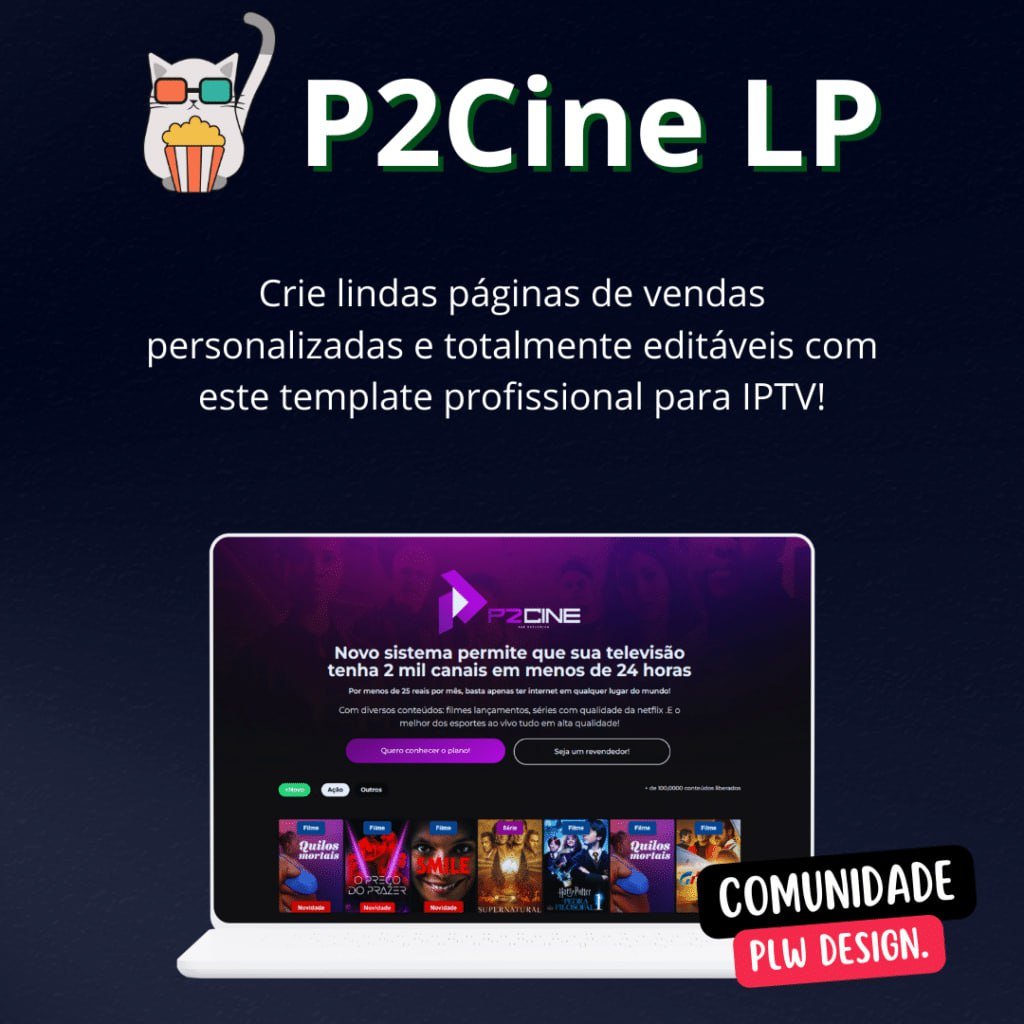 Página de Vendas Editável – P2Cine LP: Crie seu Site IPTV